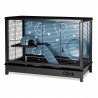 Jaula de la nueva colección Qbik. Se trata de una nueva linea de jaulas que Voltrega lanza al mercado, es una colección totalmente novedosa, confeccionada con tubo metalico y chapa metálica en la parte trasera dECOrada con dibujos cortados al láser, lo que la hace única en el mercado. Este modelo de jaula está fabricado en España utilizando materias primas no tóxicas para el bienestar de tu mascota. El acabado es en pintura epoxi sin plomo y en la fabricación de la jaula utilizamos plástico polipropileno. Incluye una noria, un piso con escalera, un iglu y un bebedero. Disponemos de todas las piezas de recambio y muchos accesorios para complementar la jaula. Para mejorar la salud y confort de nuestra mascota, Voltrega rECOmienda limpiar la jaula con Zerobakter, un producto ideal para la desinfección de la jaula. También rECOmienda poner arena absorbente en la bandeja de la jaula y cambiarla semanalmente. Además disponemos de varios juguetes y snacks totalmente adecuados a tu mascota.